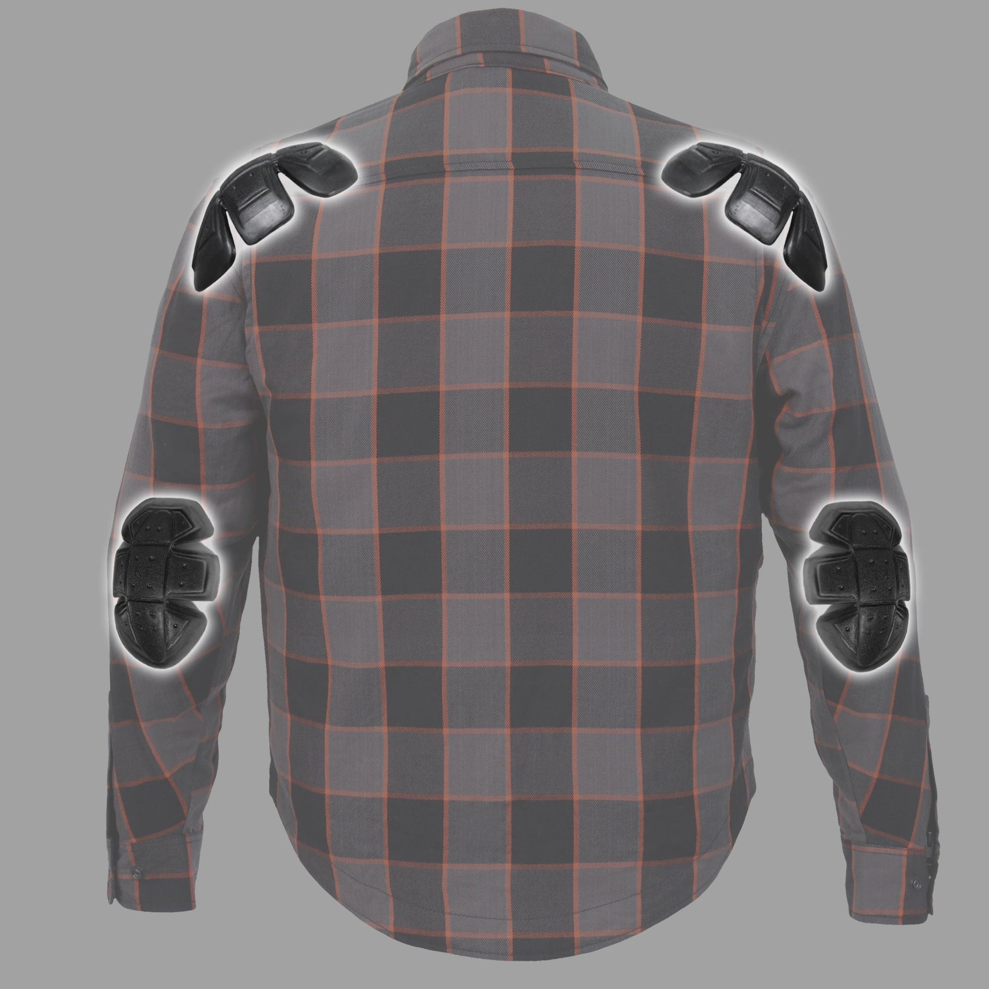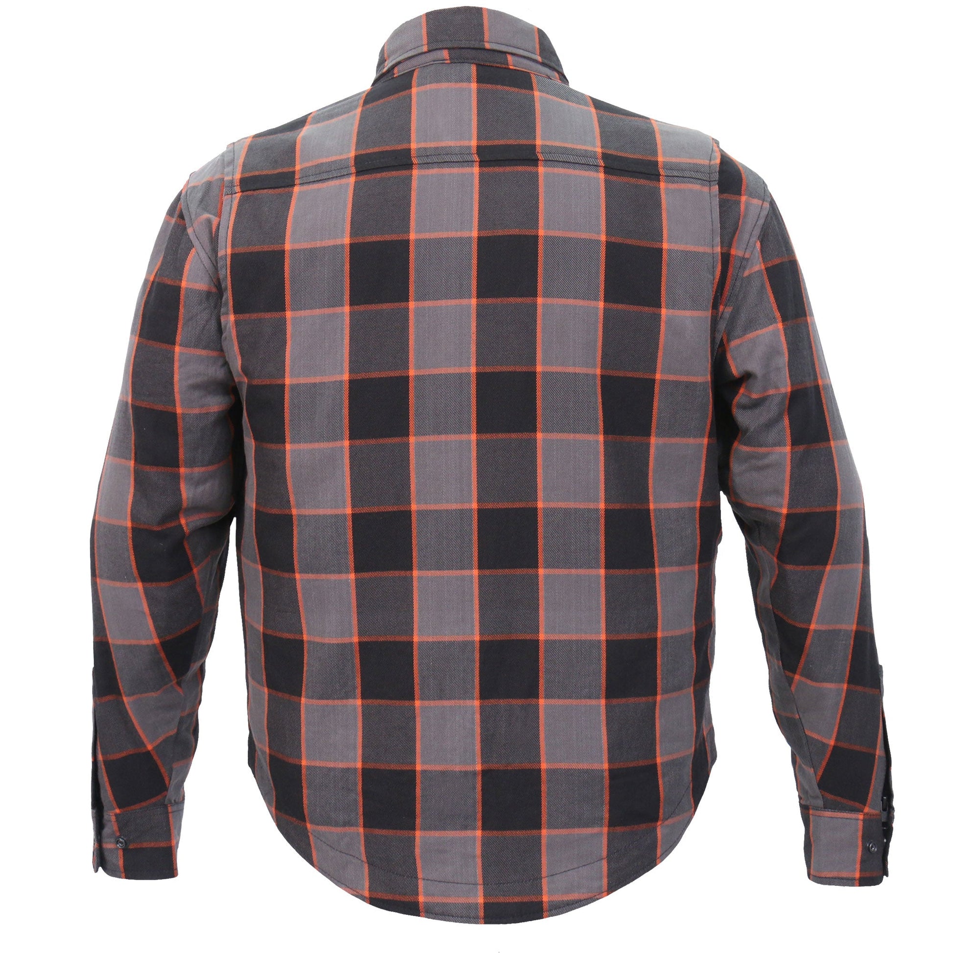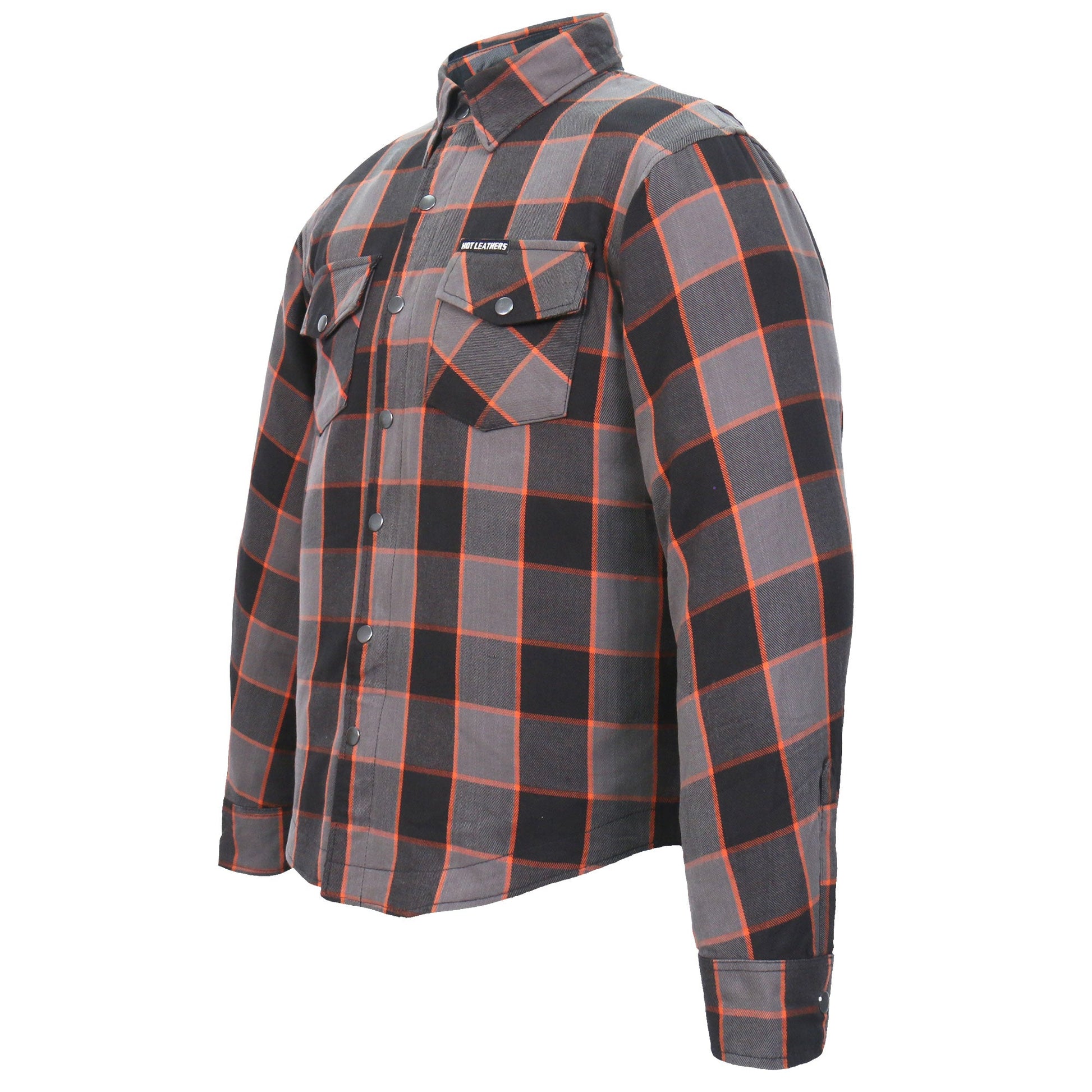 Hot Leathers JKM3010 Men's Black and Grey with Orange Armored Flannel Shirt