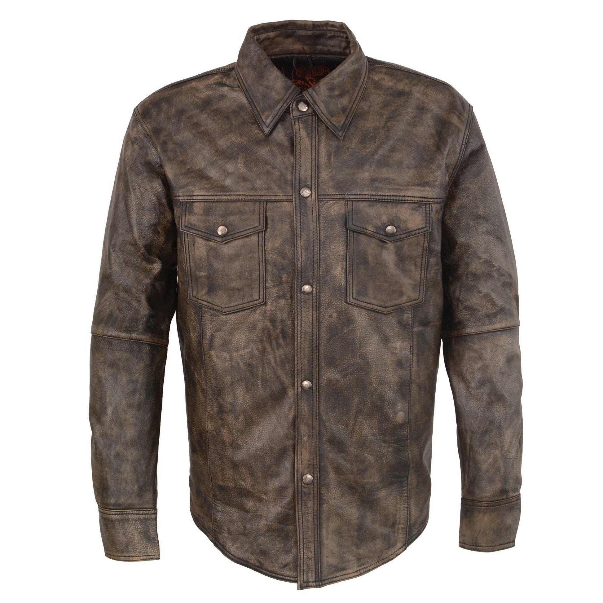 Milwaukee Leather MLM1606 Men's 'Button Down' Distressed Brown Casual Biker Leather Shirt