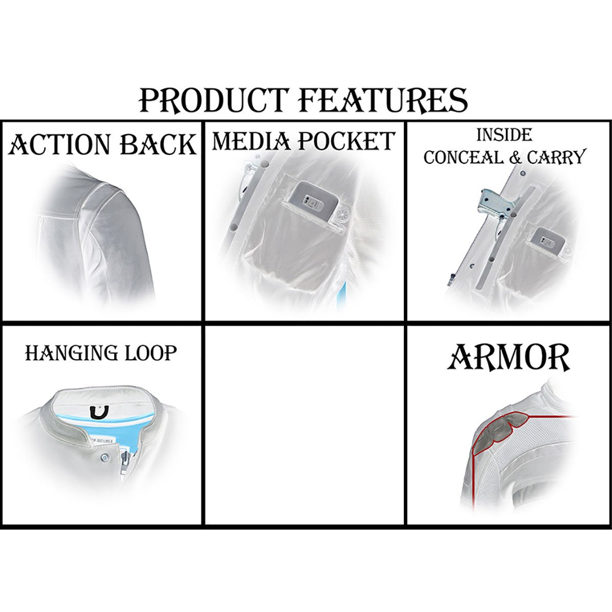 Ventilated System: Under Arm Vents on Each Side with Zipper Openings and Closures Making Breathable and Ventilated - Action Back Shoulder Panel for Added Movement/Flexibility While Riding