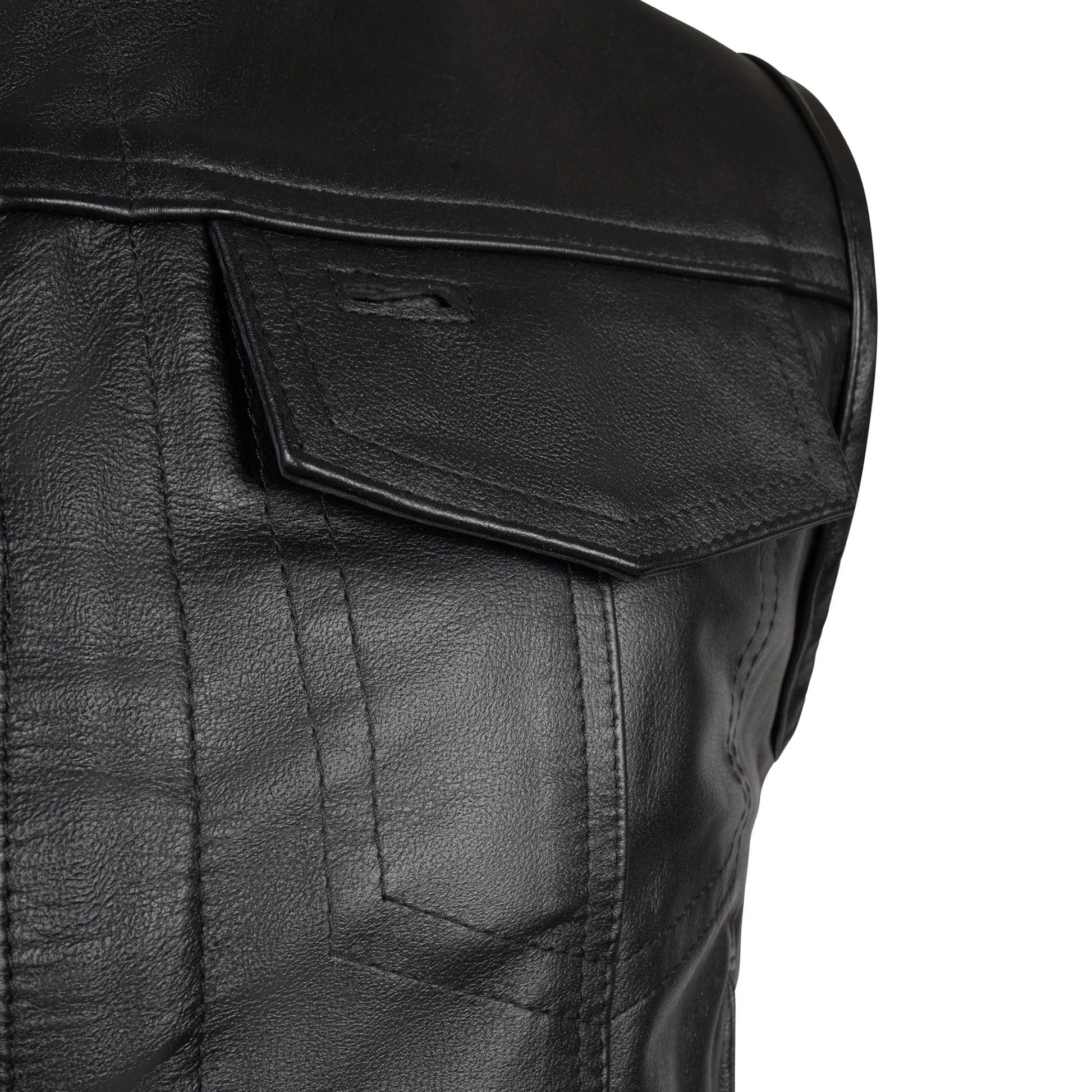 Black Horsehide Leather Motorcycle Vest: Crafted from high-quality horsehide leather, offering durability and a classic look.