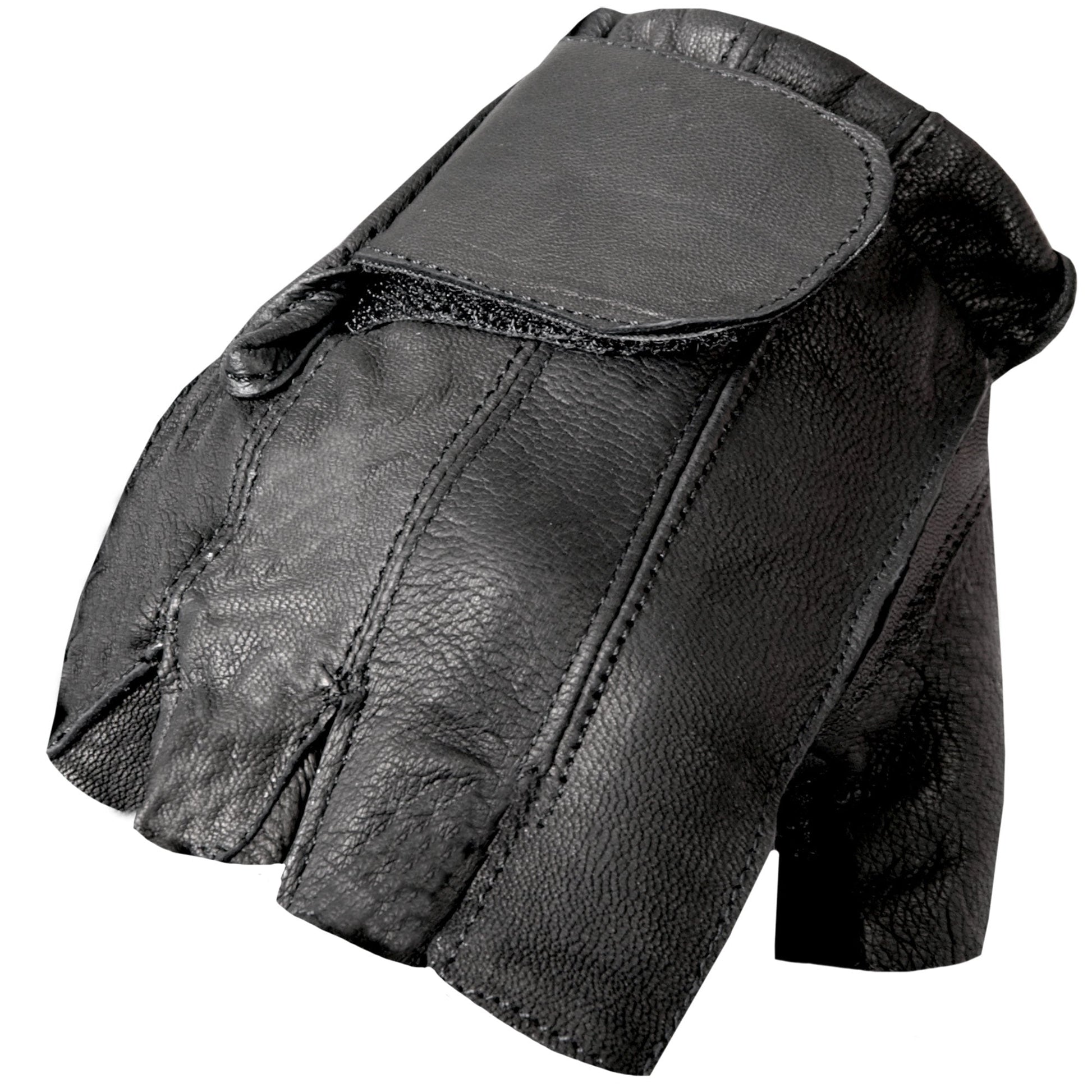 Hot Leathers GVM1011 Naked Leather Unlined Fingerless Gloves with Padded Gel Palm
