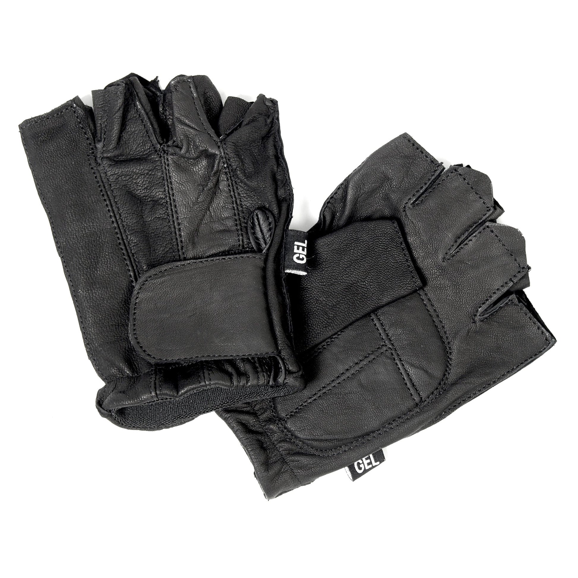These Hot Leathers fingerless gloves are made of black naked leather. They have a padded gel palm and are unlined. Perfect for everyday riding.
