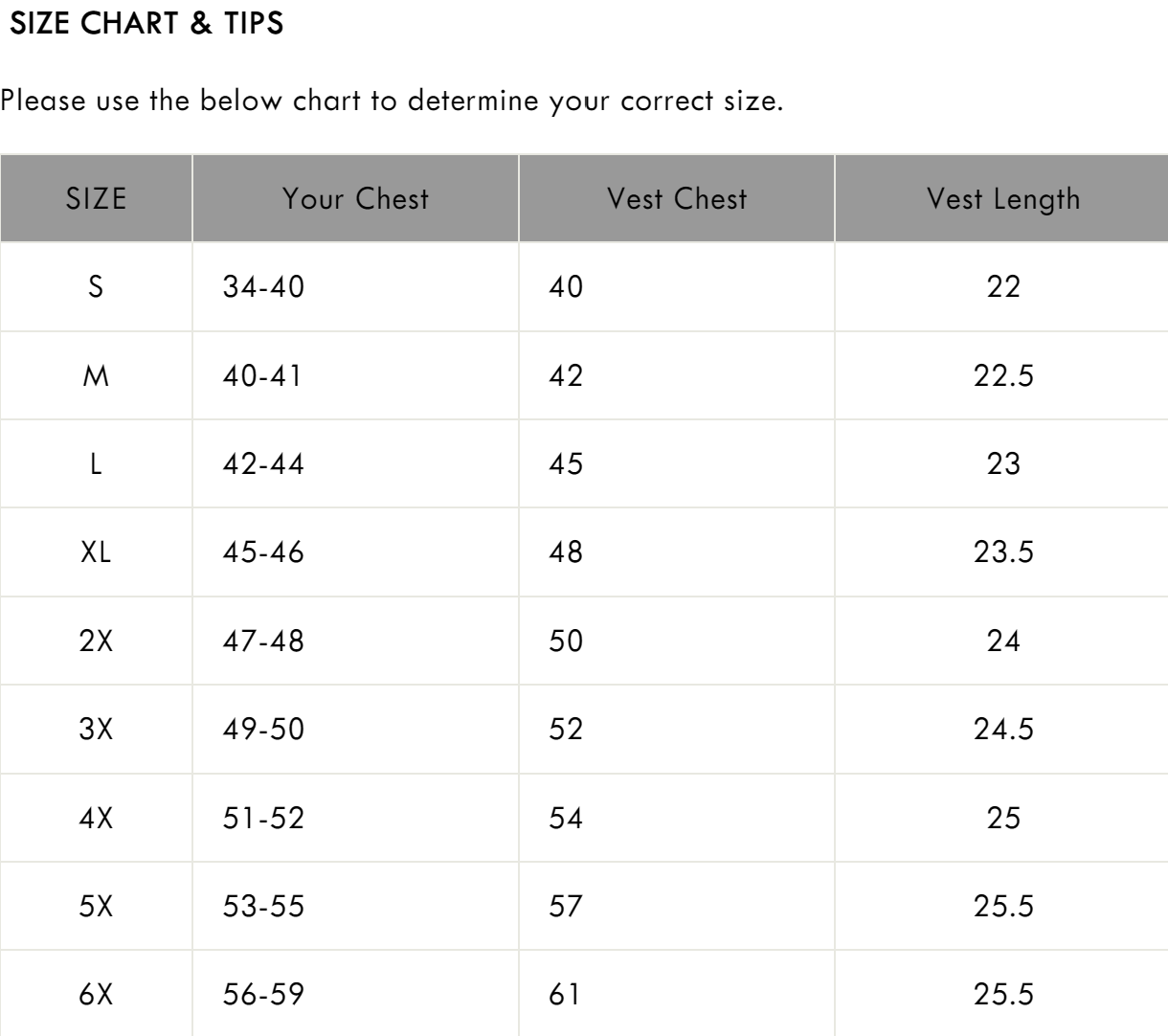 - Low Cut Style Vest for Proper Fit (3 Inches Shorter than Standard Club Vest)