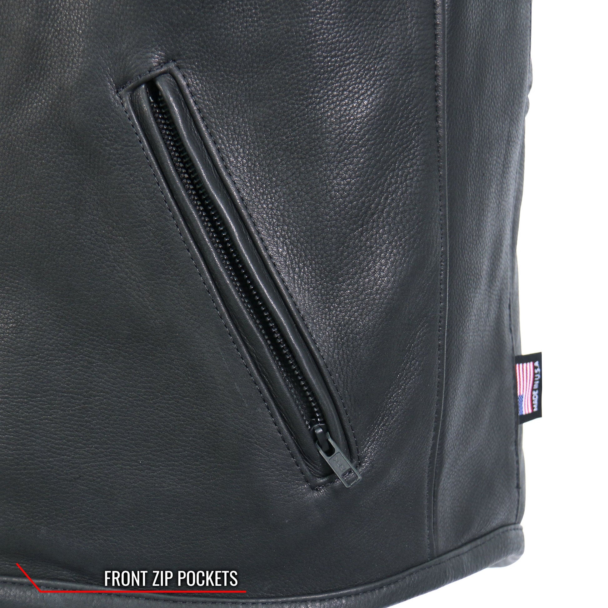 Hot Leathers VSM5001 Men's USA Made Premium Steerhide Motorcycle Leather Biker Club Vest with Gun Pocket