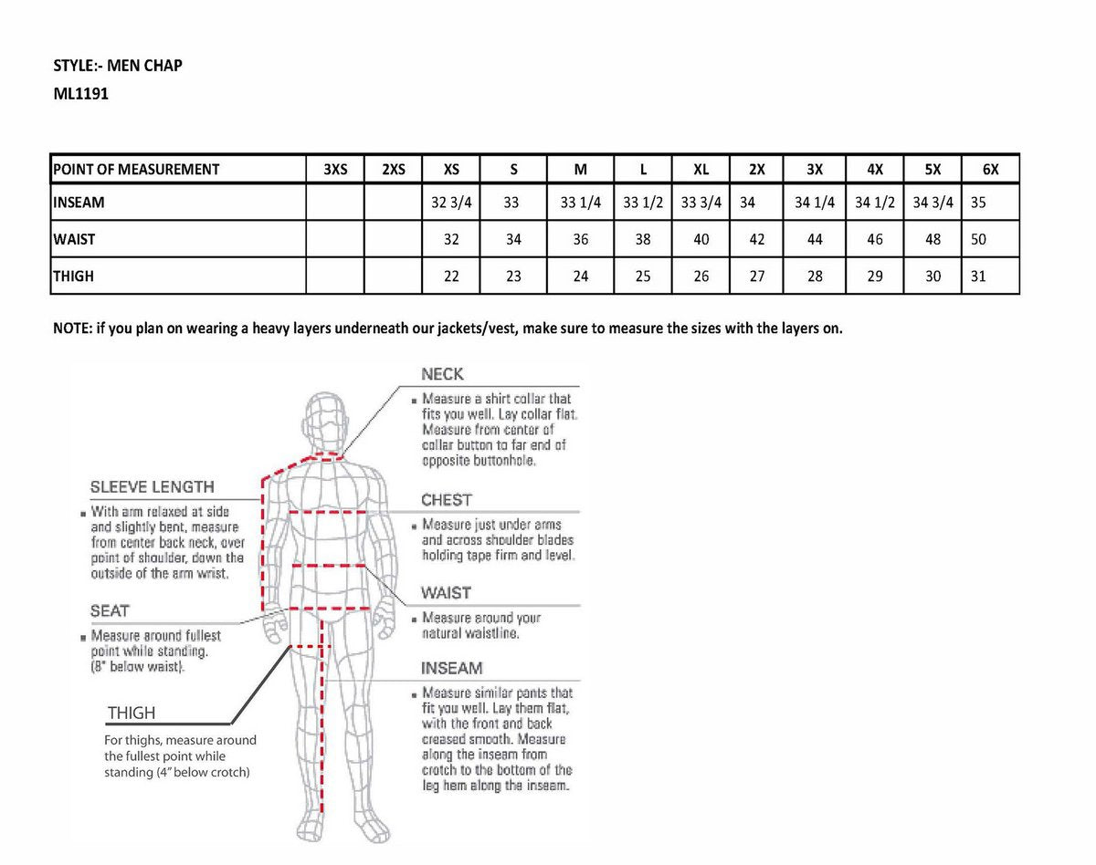 Milwaukee Leather ML1103 Men's Black Slash Pocket Chap with Thermal Liner