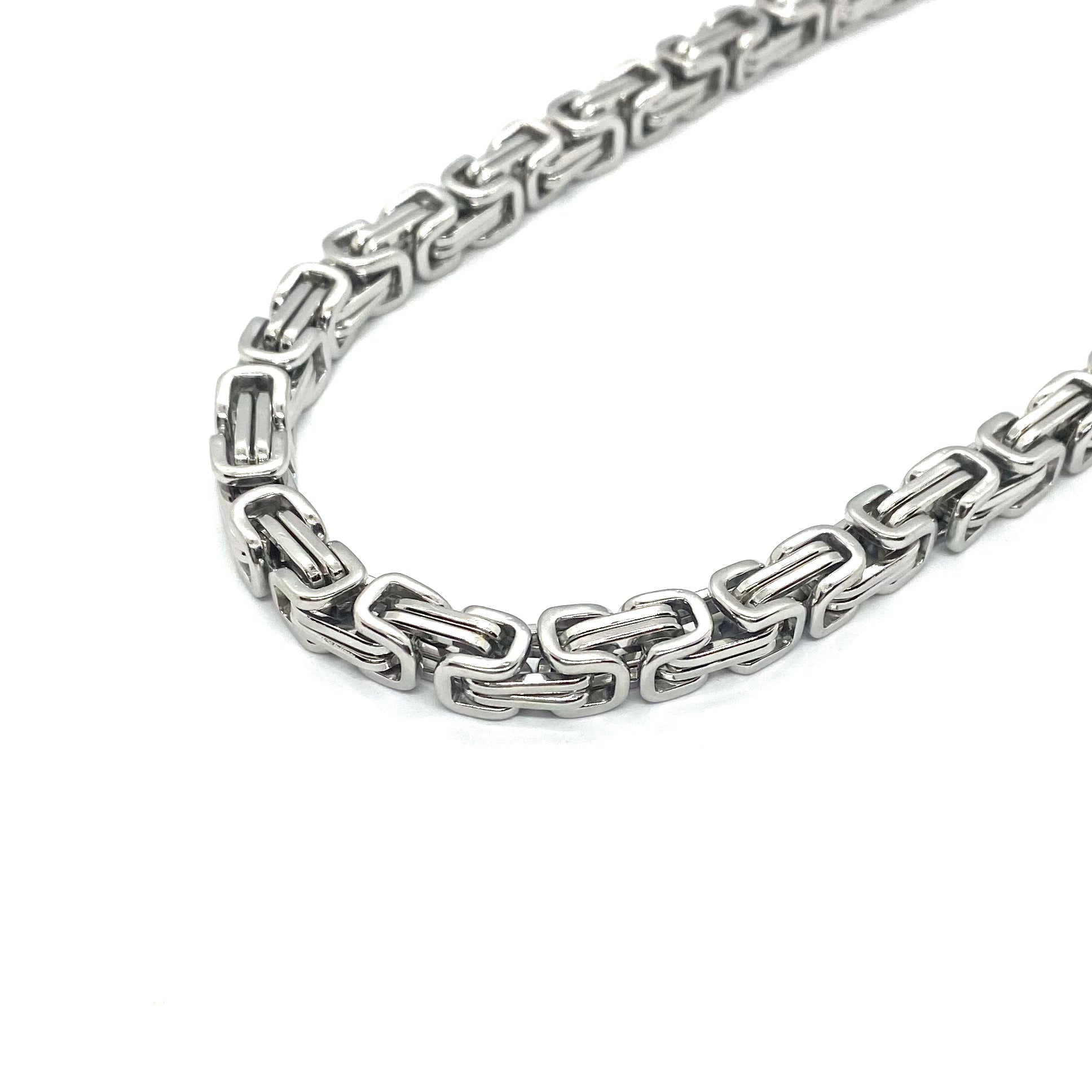 BYZ7M Necklace 7MM Wide Byzantine Chain Silver Color. Available in 24", 26, 28" Lengths. High quality 316L Stainless Steel.