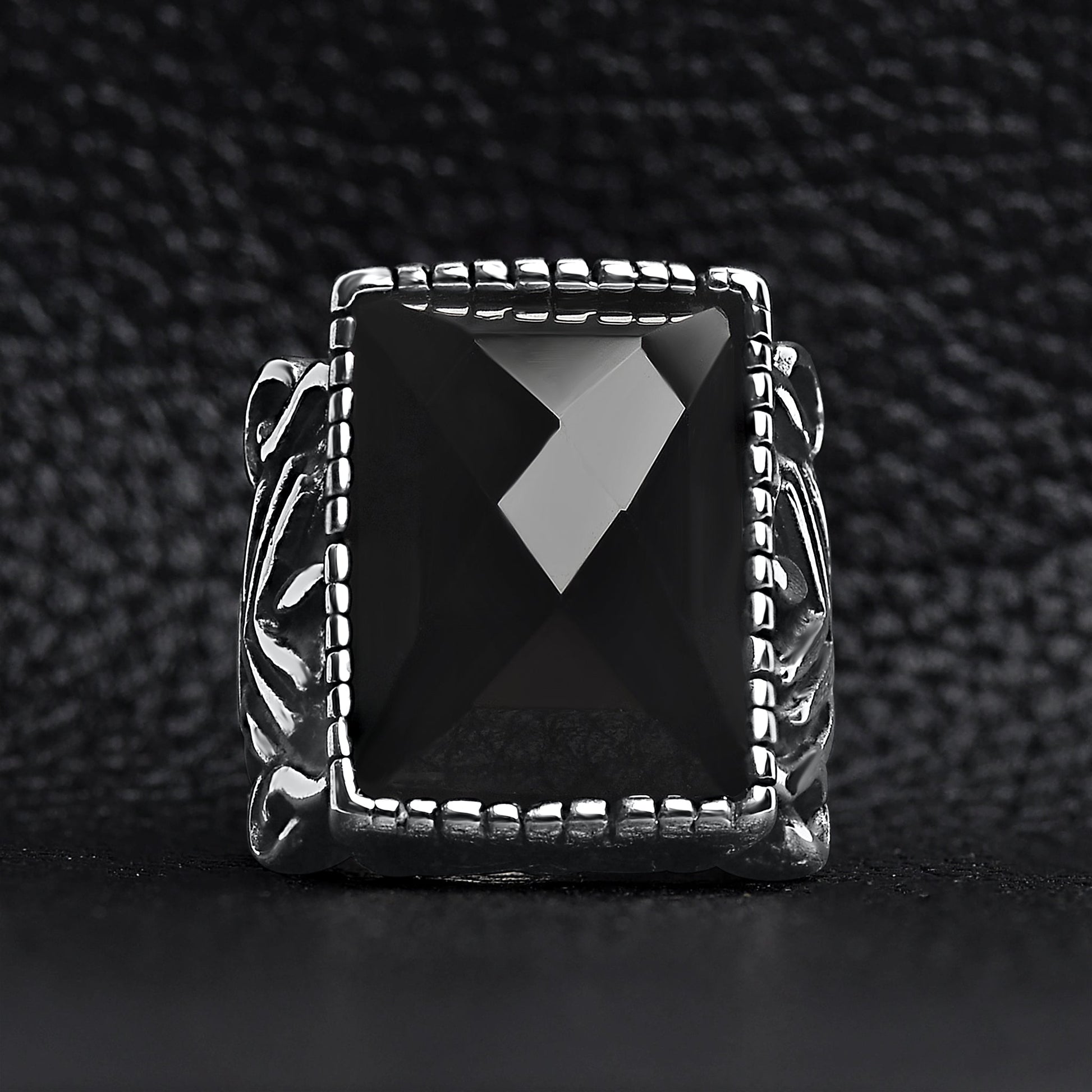 The Detailed Center Black Stone Stainless Steel Ring is custom molded and cast with a premium blend of surgical stainless steel that offers durability, even after exhaustive every day wear. This unique and bold ring is gothic inspired and creates the perfect accent for casual wear and special occasions. Combined with a polished finish and detailed accents including the large black stone, the Detailed Center Black Stone Stainless Steel Ring works great as a bold statement ring that can be worn in water or while you sweat without worry.