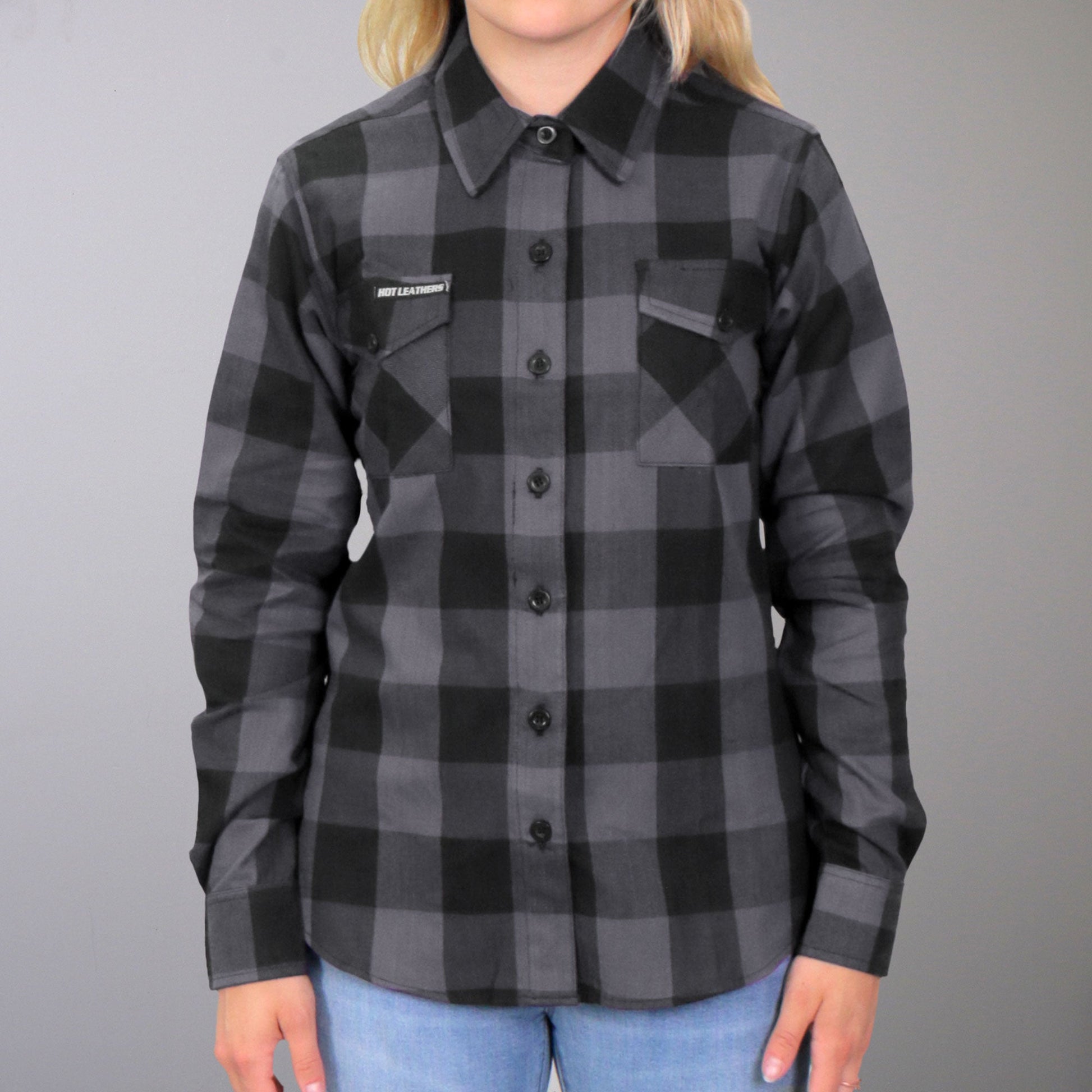 Hot Leathers FLL3001 Ladies Long Sleeve Cotton Black and Gray Flannel