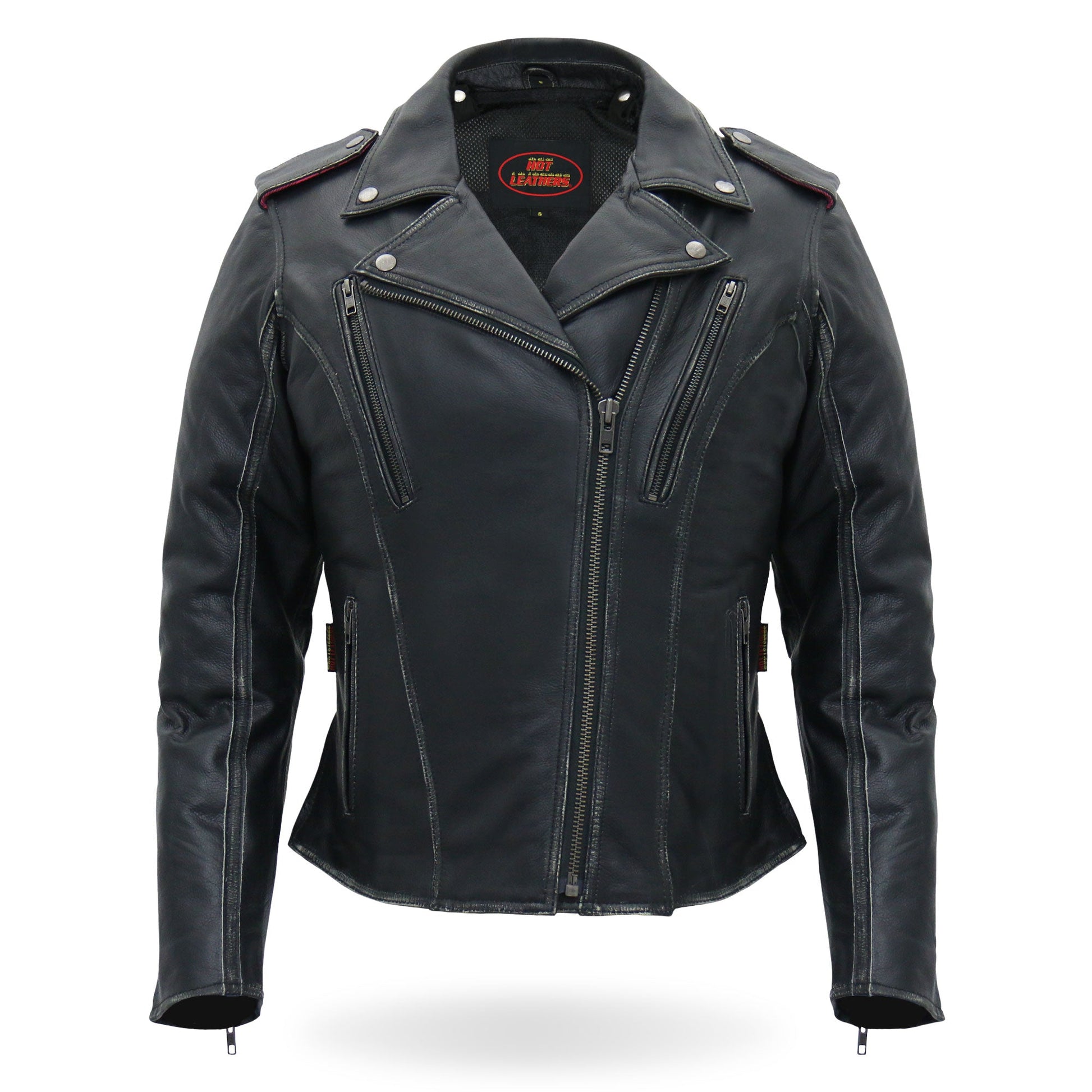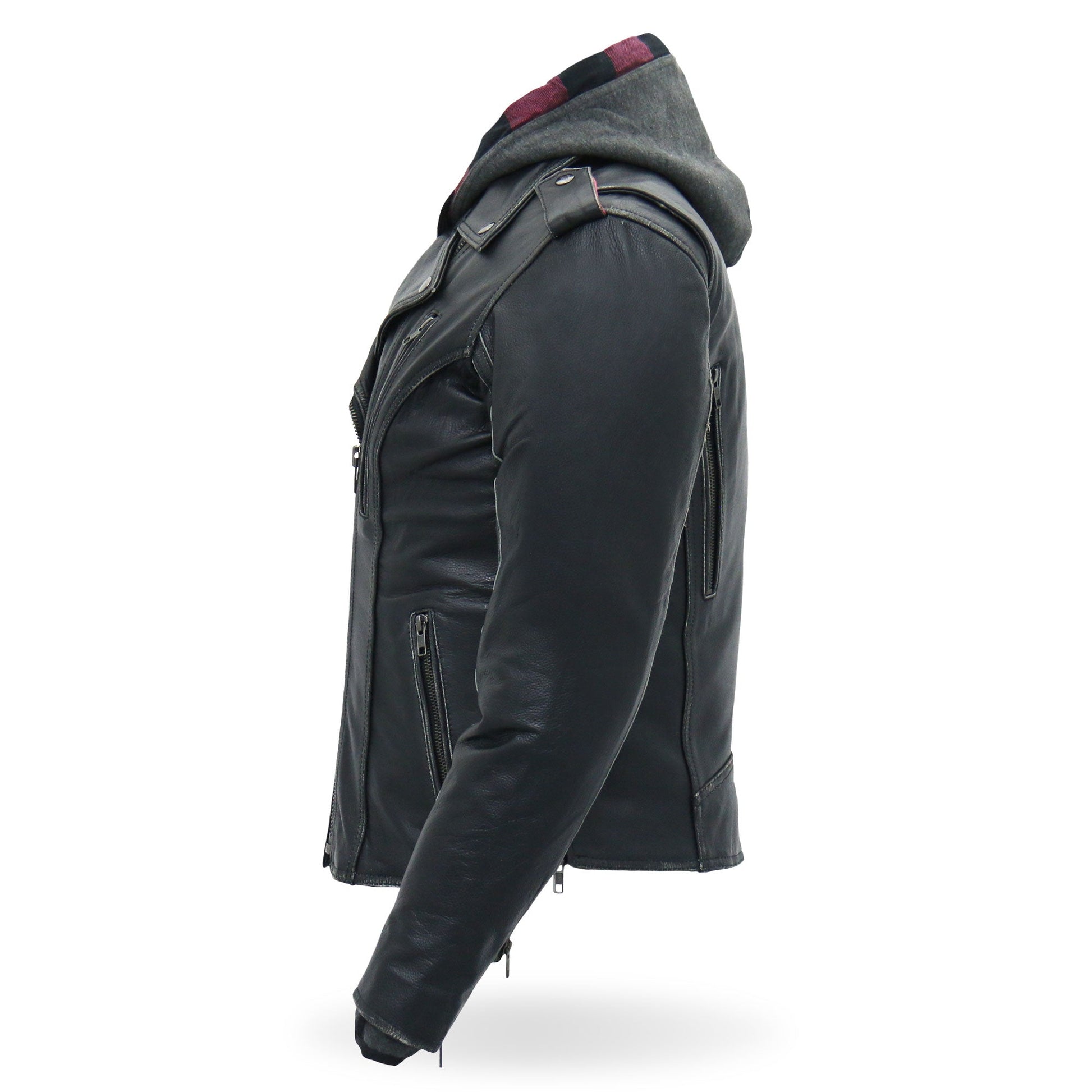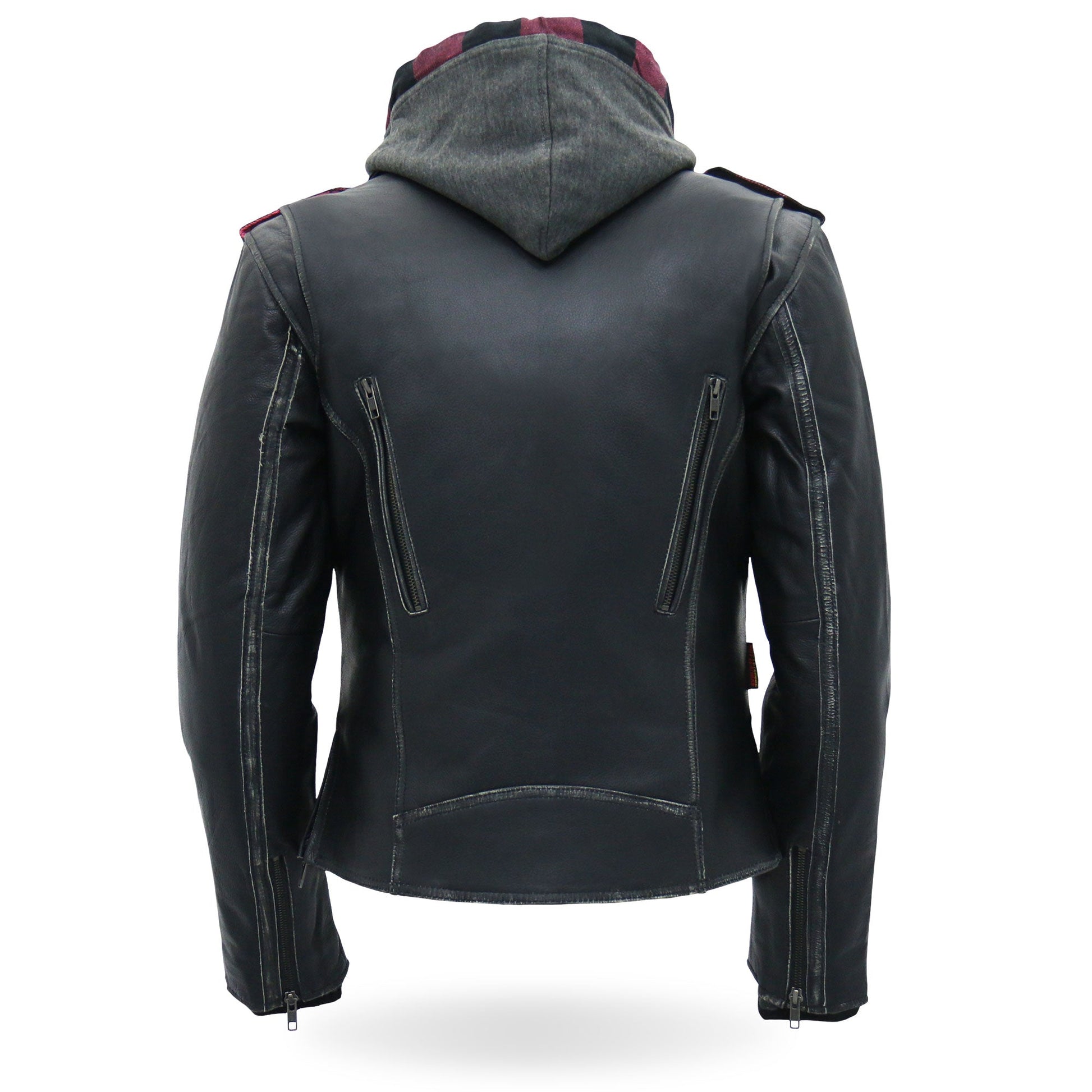 Hot Leathers JKL1033 Ladies Biker Black Leather Motorcycle Jacket with Removable Hoodie
