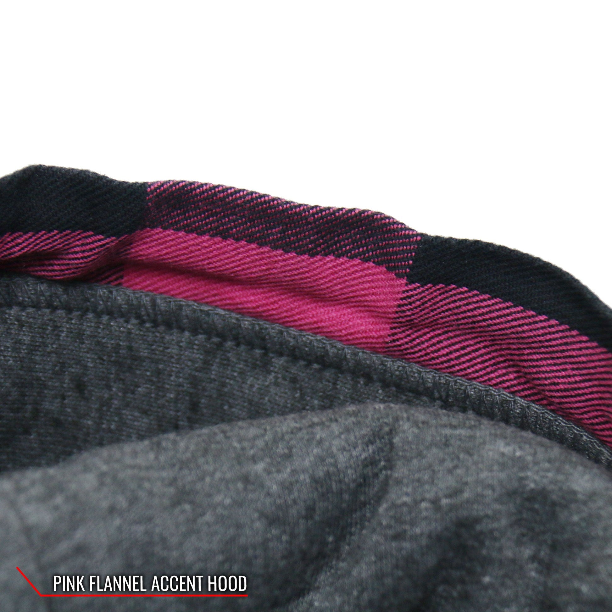 - Snap Out Full Sleeve Charcoal Hoodie w/ Pink Flannel Accent Hood