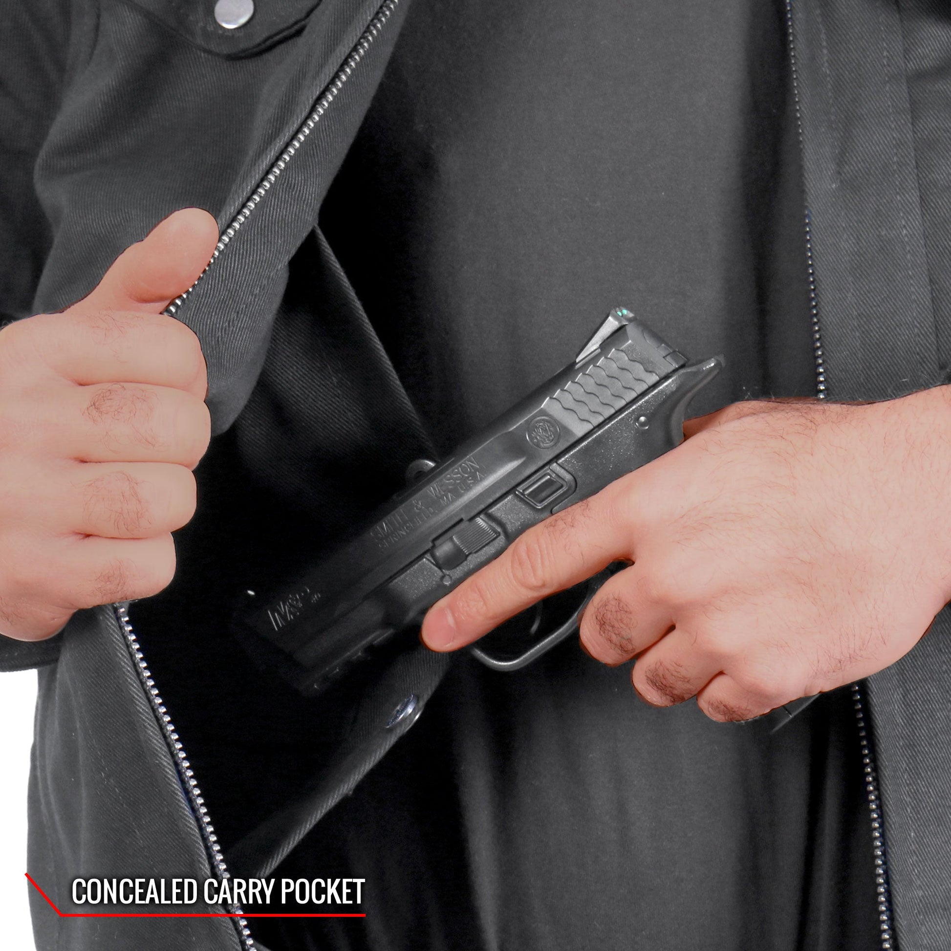 - Two concealed carry pockets