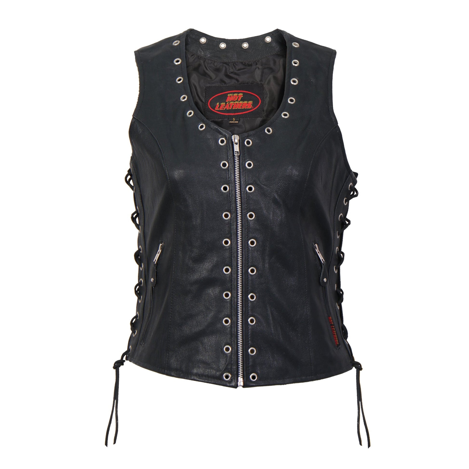 Hot Leathers VSL1009 Ladies Black Lambskin Motorcycle Biker Vest with Grommet Accents