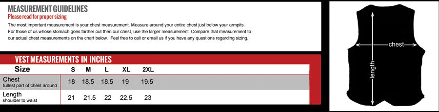 This leather vest comes with a 90 day warranty. *Free ground shipping on this item.
