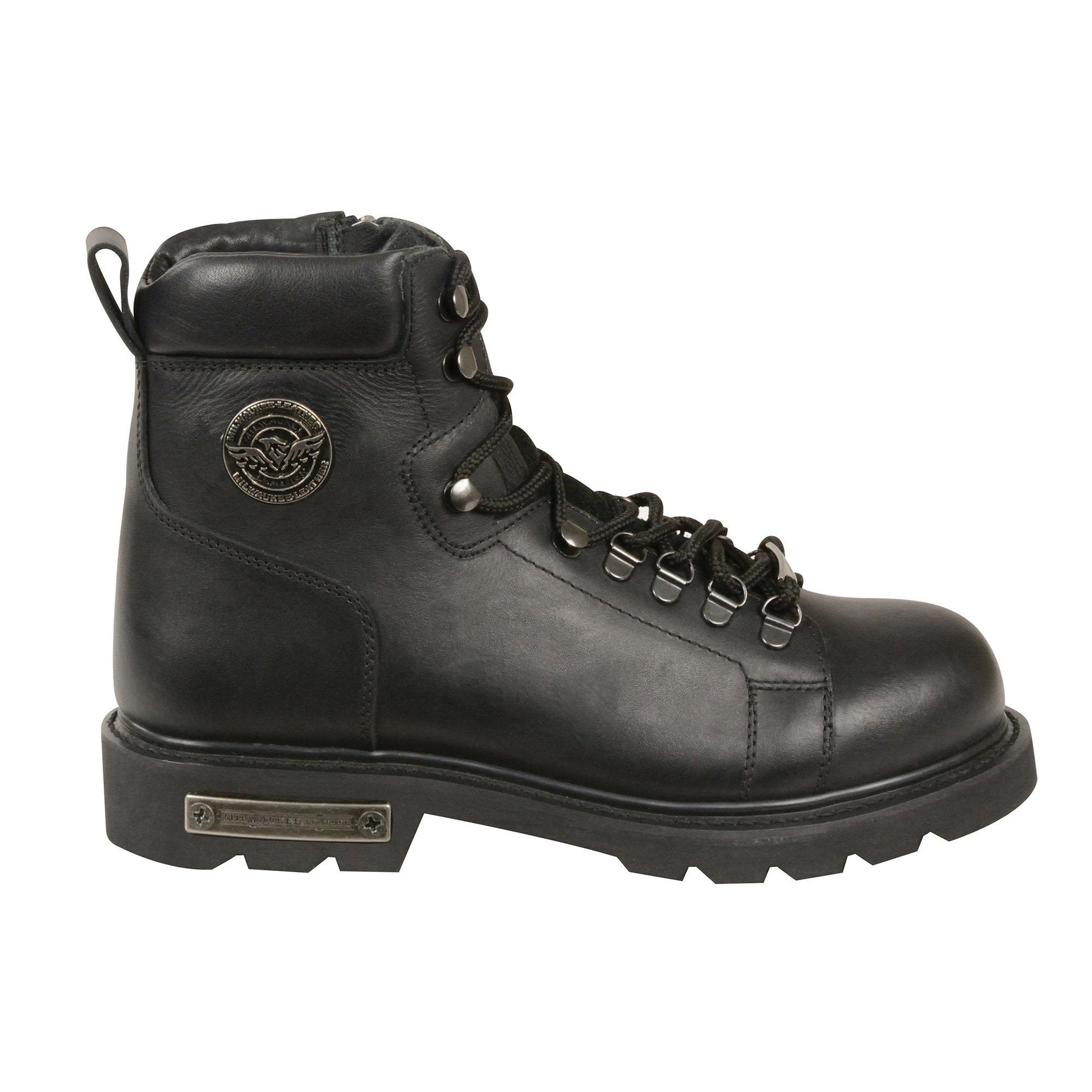 Milwaukee Leather MBM100 Men’s Black Lace-Up Boots with Side Zipper