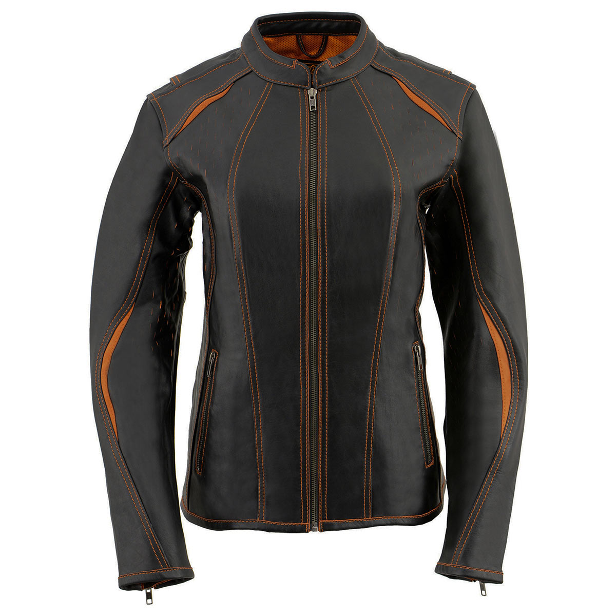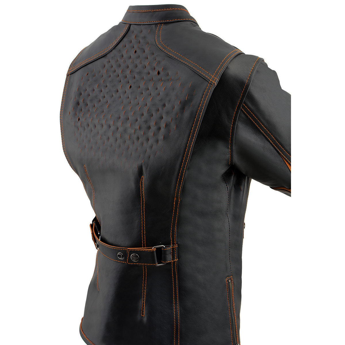 Milwaukee Leather MLL2502 Women's 'Laser Cut' Distressed Black and Orange Scuba Style Racer Jacket