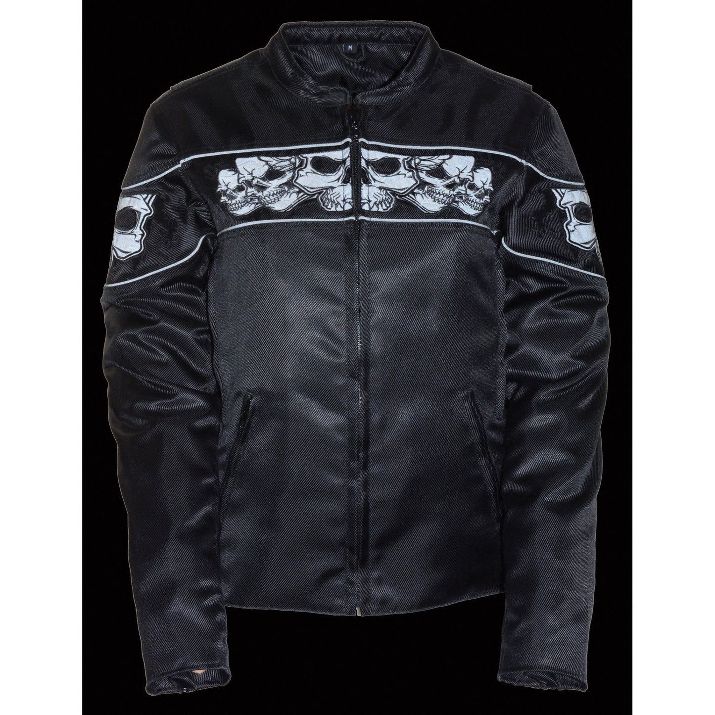 Milwaukee Leather MPL2730 Women's Black Crossover Textile Scooter Jacket with Reflective Skulls