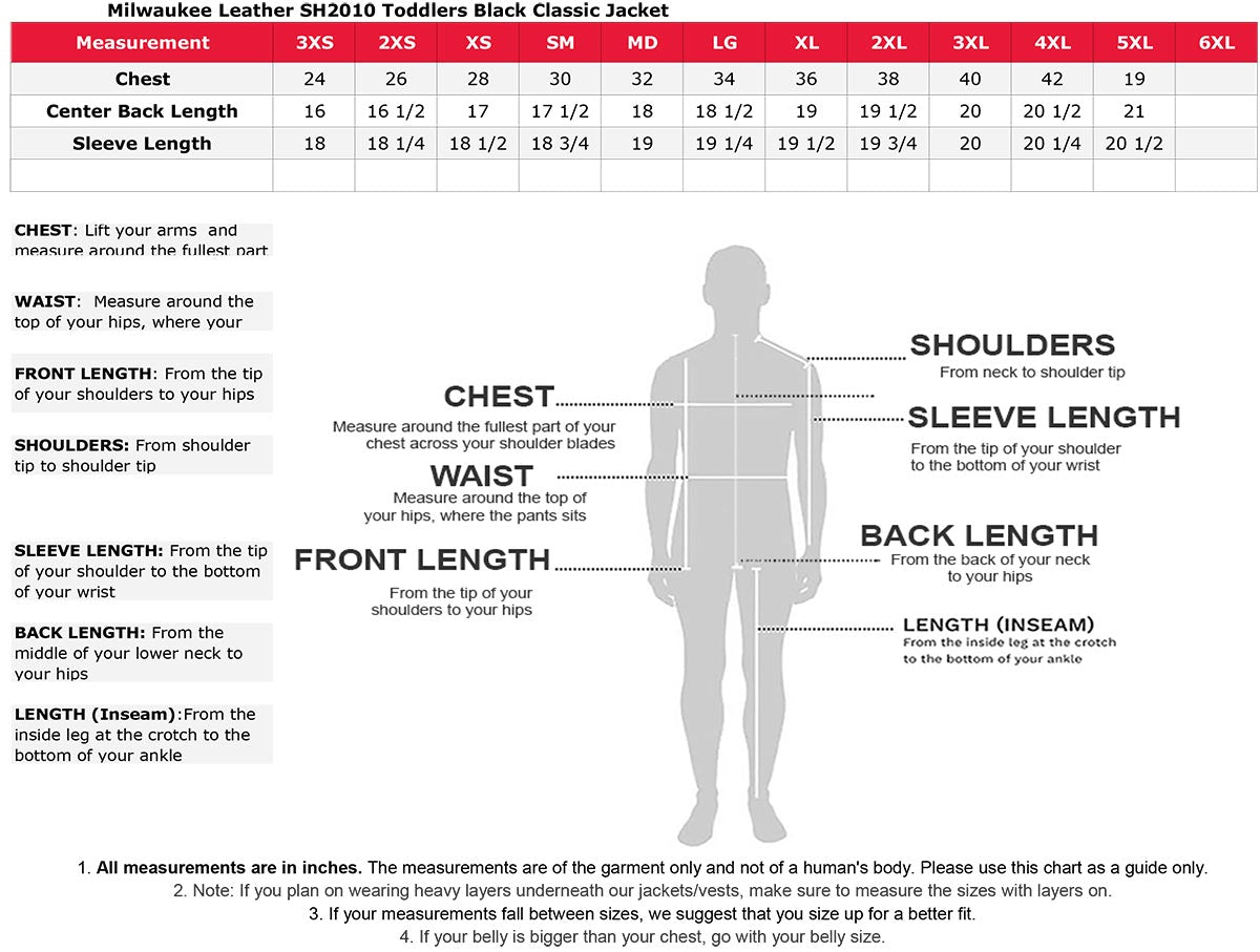 Milwaukee Leather SH2010 Toddlers Black Classic Motorcycle Leather Jacket