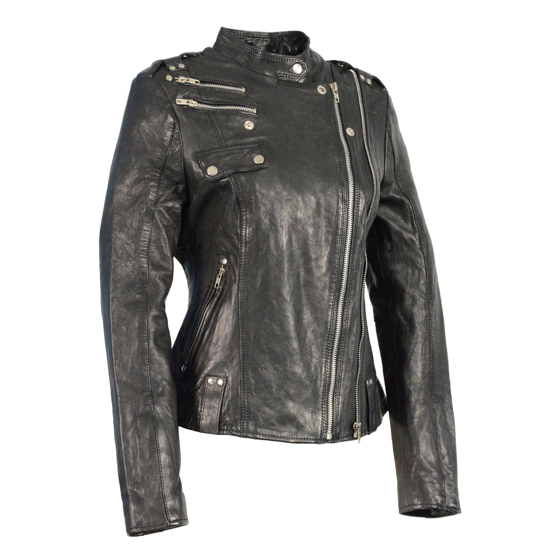 Milwaukee Leather SFL2845 Ladies Black Leather Moto Jacket with Asymmetrical Zipper