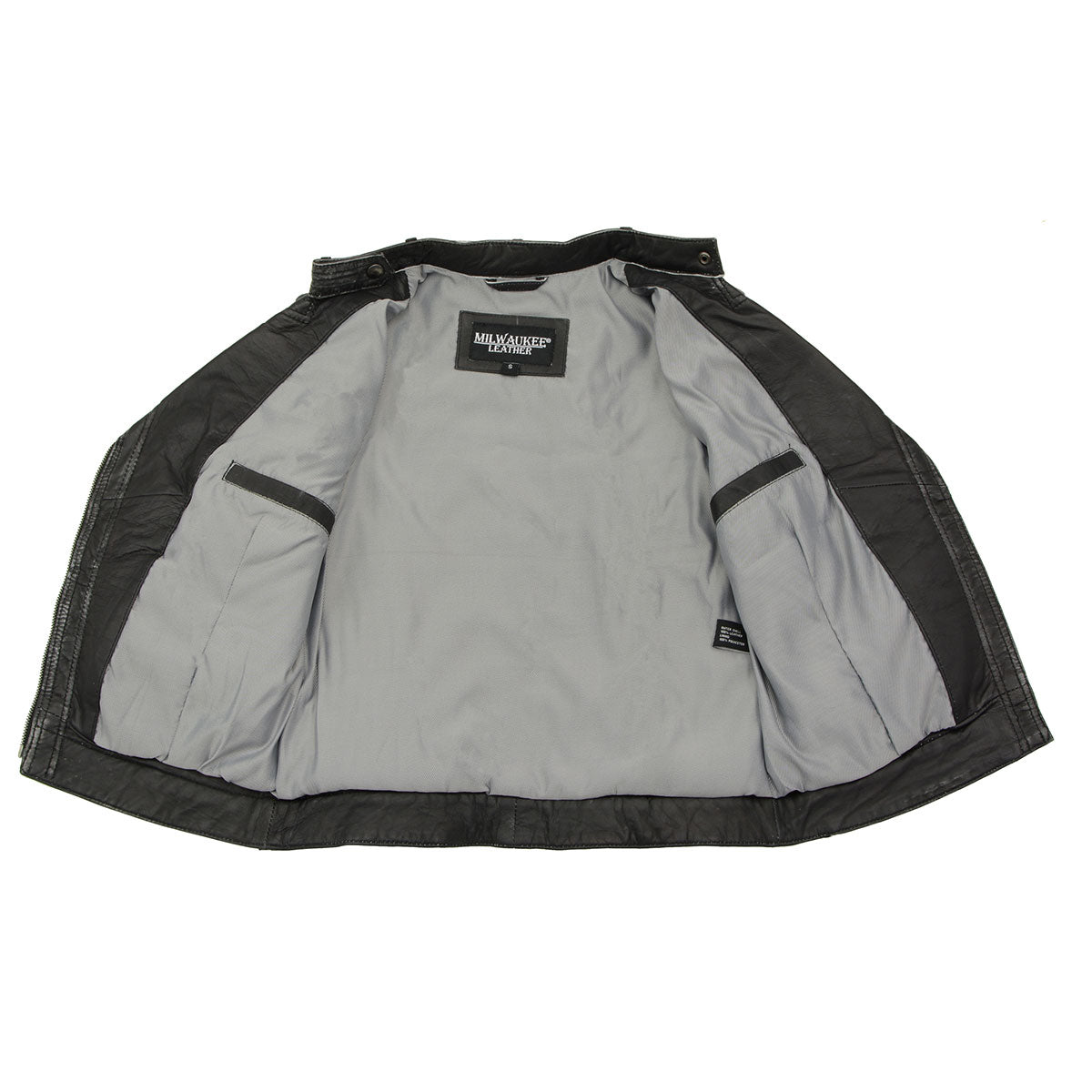 Show off a bold look with this motorcycle jacket by Milwaukee Leather featuring premium sheepskin leather for a soft feeling and excellent durability. Studded detailing and the asymmetrical shape offer contemporary charm. Order yours today from LeatherUp, the most popular online motorcycle store.