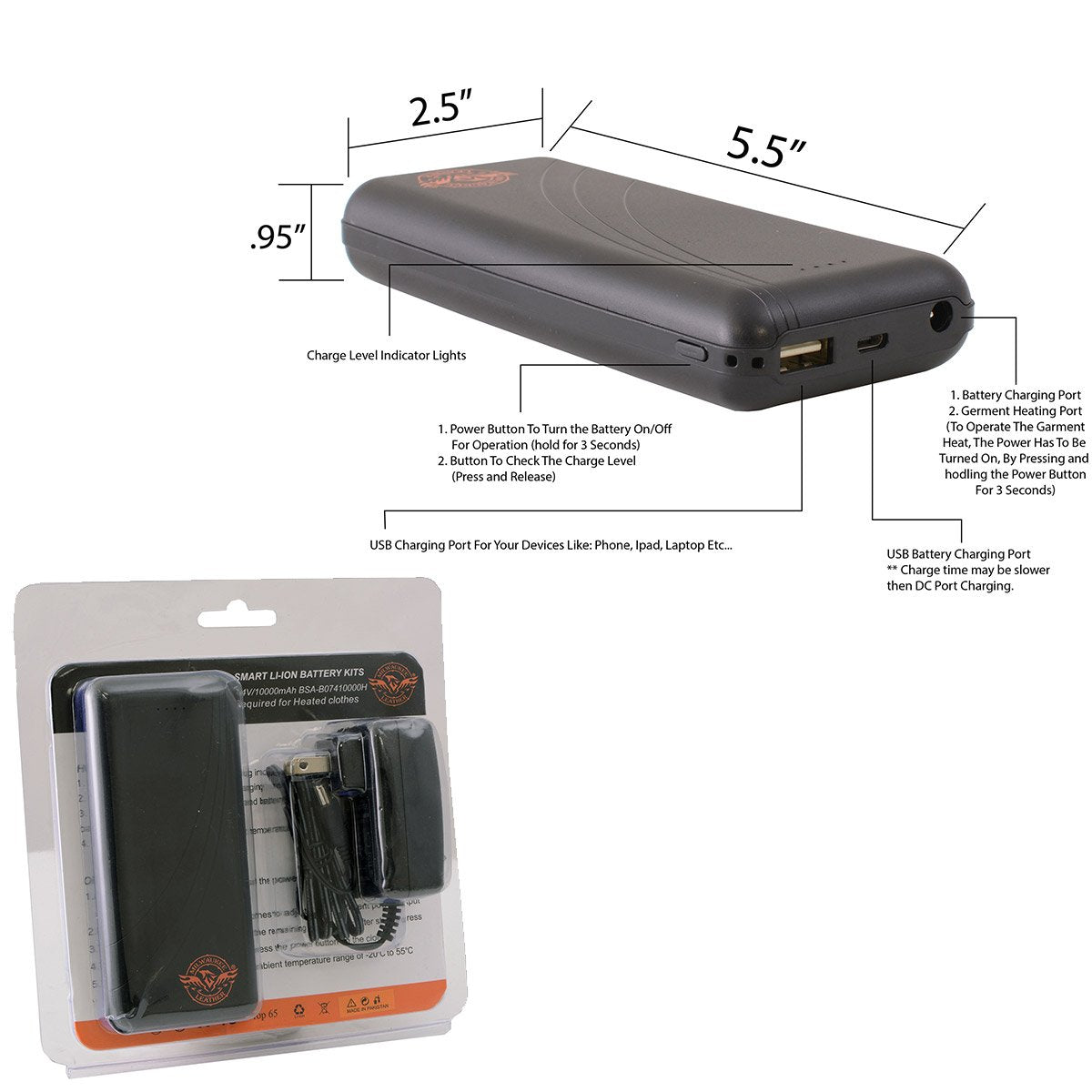 Included Rechargeable 7.4v 10000mAh Battery: Nexgen Heated Soft Shell Riding Jacket Which Is for Men but Also Can Be Worn by Women, Electric Heated Jacket Powered by Rechargeable Battery Pack So You Can Plug the Rechargeable Battery Pack Right into The Waterproof Pocket - The Battery Also Contains A USB Port, Perfect for Charging Any Smart Phones/Tablet/Smart Device