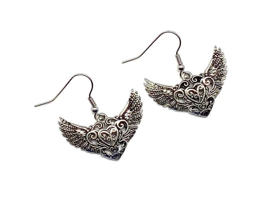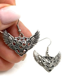 SK2535 Earring Winged Heart Scroll Design - Beautiful and Elegant
